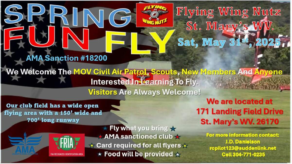 The Flying Wing Nutz welcomes all to our Spring Fun Fly! Join the Wing Nutz for a day of flying as we open our field to the public. Along with the MOV Civil Air Patrol, area Boy Scouts, and other local RC Clubs, the day will be filled with RC Airplanes, Drones, and other model aviation!